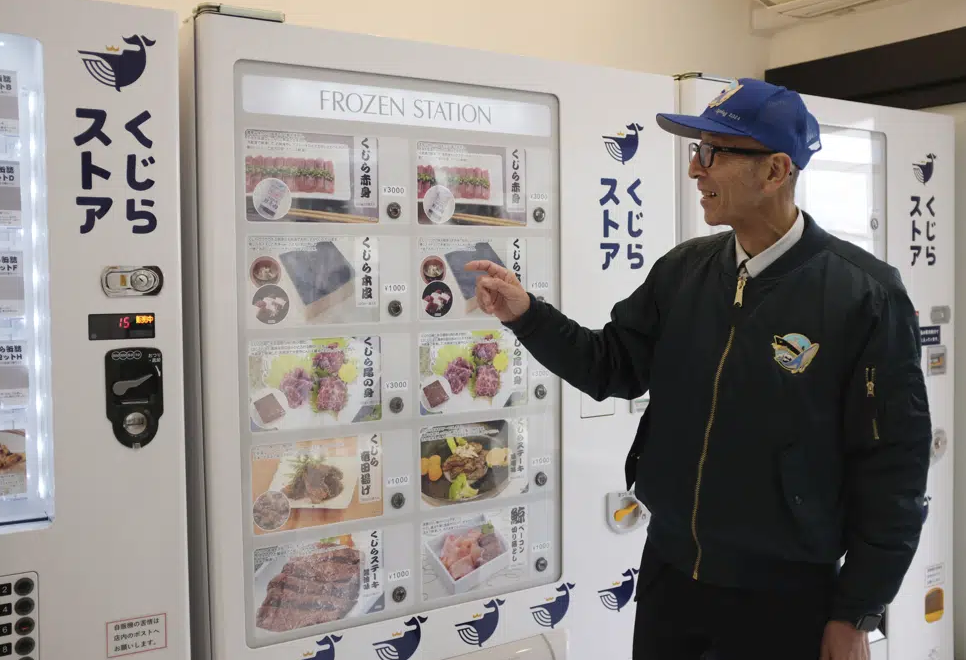 Luego de batallar por años para promocionar sus productos en medio de las protestas de los conservacionistas, un operador ballenero japonés halló una nueva forma de atraer clientela y aumentar sus ventas: máquinas expendedoras de carne de ballena.