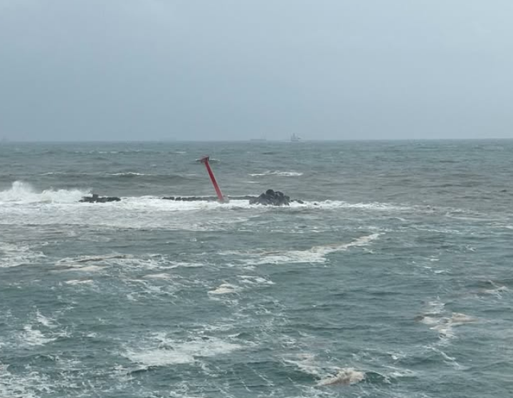 Las ráfagas de viento y oleajes provocaron el colapso de la torre de señalización del rompeolas en el acceso a SSA Marine MIT.