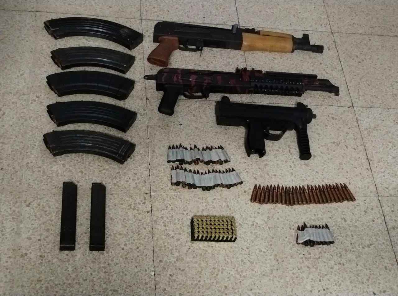 De acuerdo con información de la Policía Nacional, las armas de grueso calibre fueron encontradas junto a 5 proveedores de fusil y un proveedor de 9 milímetros, dentro de una estructura de doble fondo en las puertas delanteras y traseras del auto. Adicional, en otro doble fondo localizado en la caja de cambios se decomisó un proveedor 9 milímetros y 50 municiones del mismo calibre.