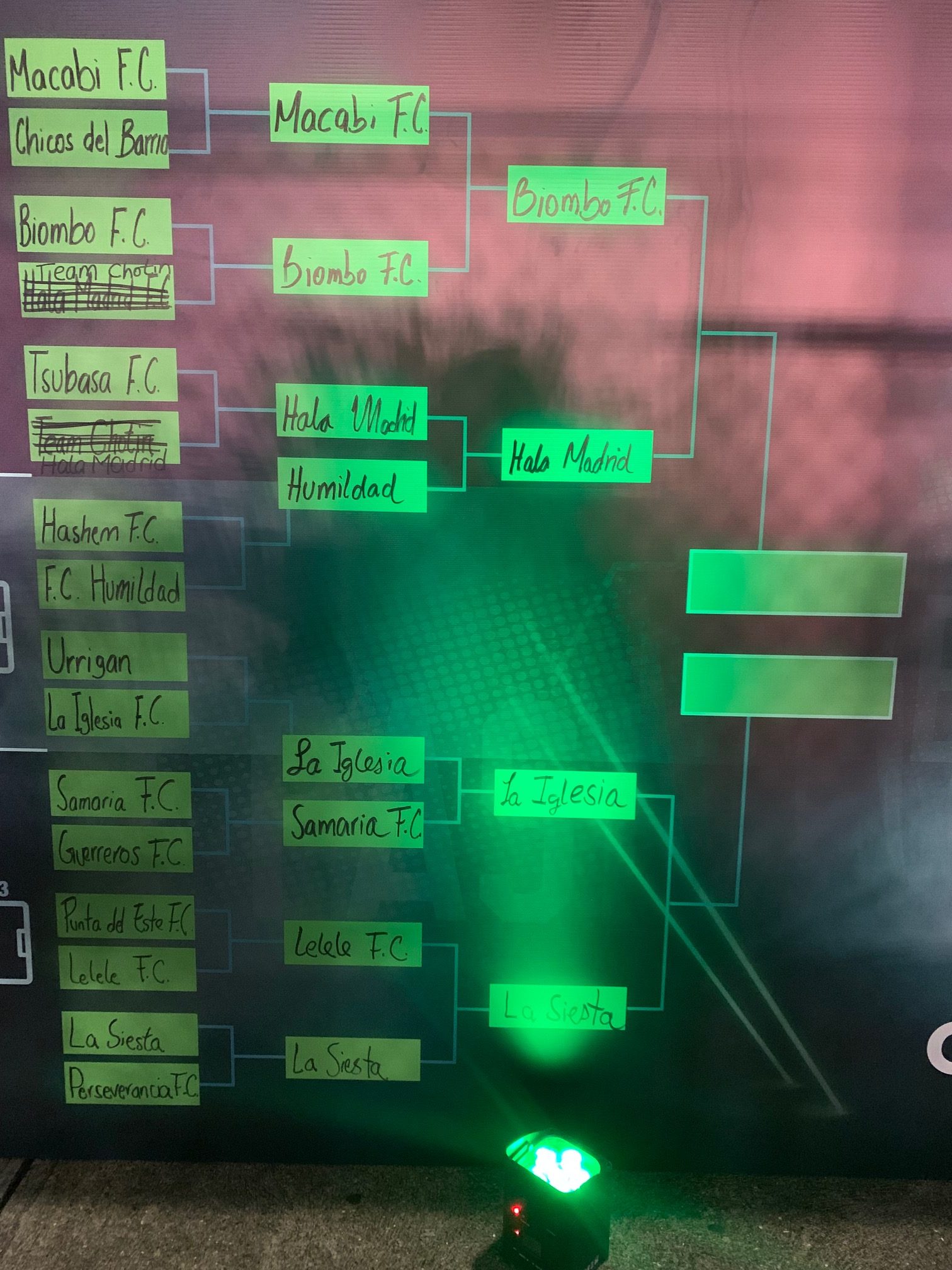 Macabi FC, Chicos del barrio, Biombo FC, Team chotin, Tsubasa FC, Hashem FC, FC Humildad, Urrigan, La Iglesia FC, Samaria FC, Guerreros FC, Punta del Este FC, Lélele FC, La Siesta, Perseverancia FC, fueron los equipos elegidos para disputar la copa. El torneo consistía en partidos de 7 minutos, sacando el equipo ganador para pasar a una segunda ronda. Los partidos eran pitados por árbitros federados.
