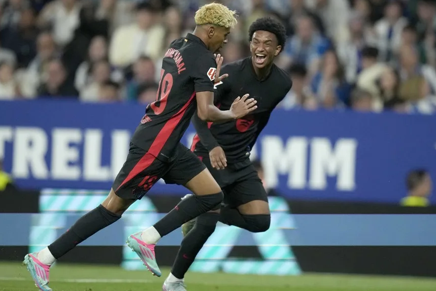 El Barcelona se llevó un derbi y un título de Liga al derrotar (0-2) al Espanyol en el RCDE Stadium gracias a un gol de Lamine Yamal en el 53, un disparo impecable a la escuadra que rompió la apatía inicial azulgrana y frenó el hambre local, y a la sentencia de Fermín en el descuento.