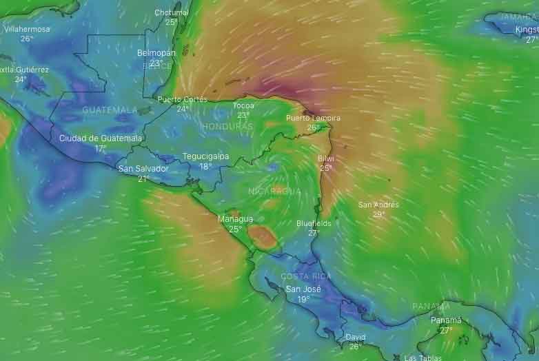 El huracán Iota pierde fuerza sobre territorio nicaragüense, según datos del Centro Nacional de Huracanes de EEUU se ha debilitado a categoría 1. Sin embargo, continúa su rumbo hacia Honduras.