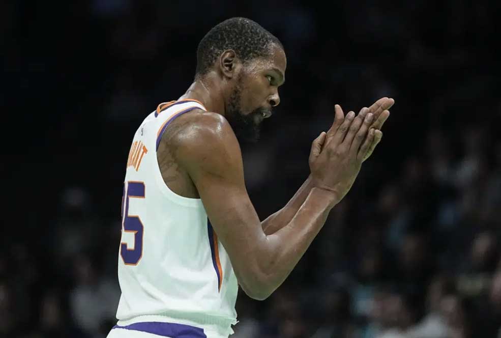 Durant anotó dos triples, una serie de disparos a media distancia y demostró que aún tiene la explosión para llegar al canasto con una bandeja de mano izquierda para su primer enceste con los Suns. También aportó a la defensiva con dos bloqueos sobre el pívot novato de los Hornets, Mark Williams, en los primeros cinco minutos.