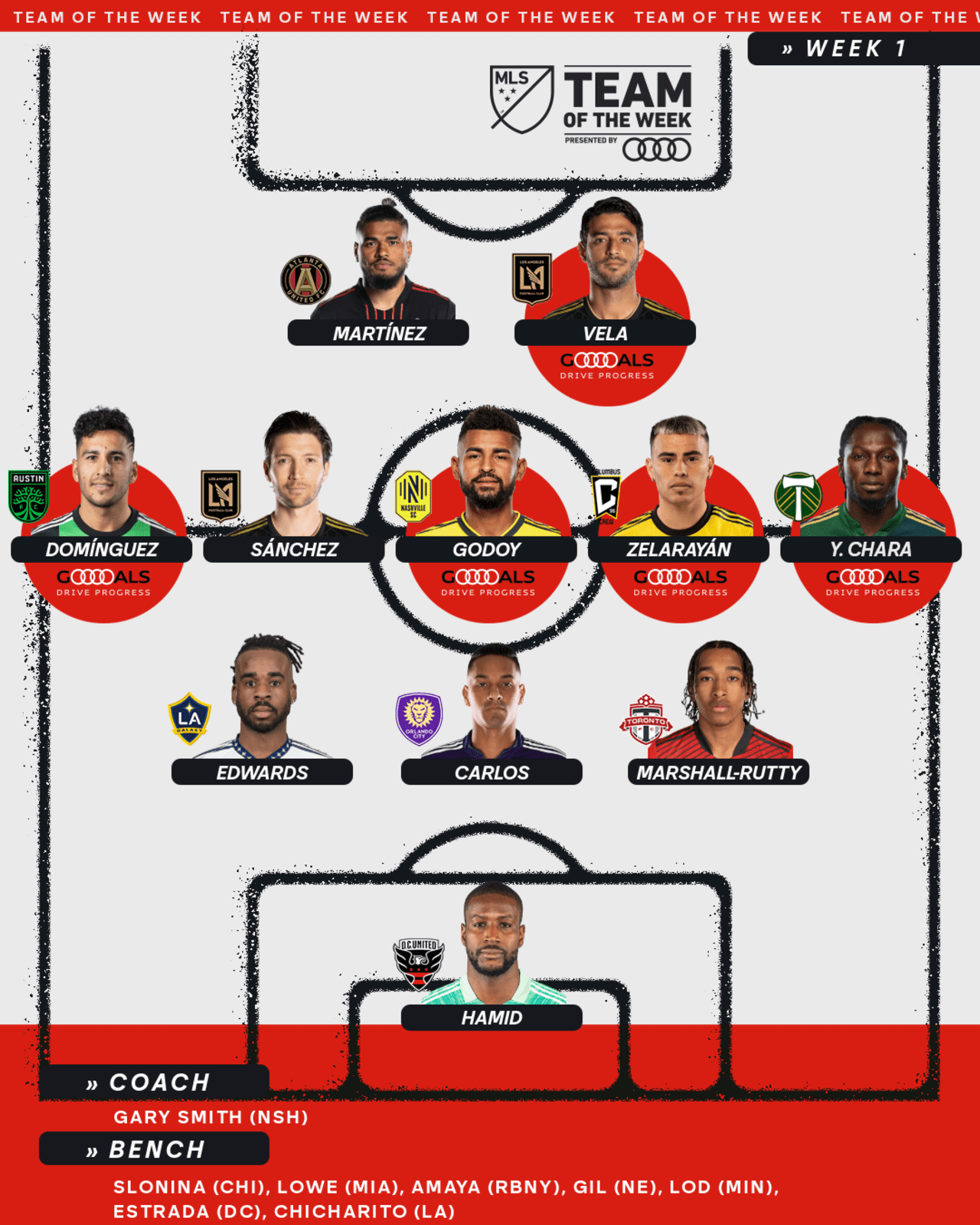 Aníbal Godoy le daño la fiesta al Seattle Sounders en el arranque de la Major League Soccer y su gol le dio los 3 puntos a los de Nashville. La recompensa no se hizo esperar y el ‘samurái’ apareció en el XI de la semana, además de su técnico Gary Smith.