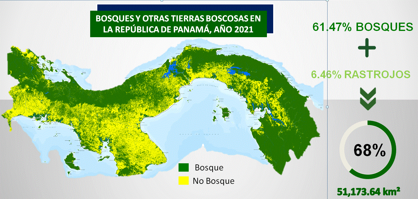 En el marco del Día Mundial dela Tierra el Ministerio de Ambiente (MiAMBIENTE) anunció que la cobertura boscosa del país abarca un 68 % (51,173.64 km²), un 3% más que en el año 2012.