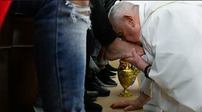 Este Jueves Santo, 6 de abril, el Papa Francisco se trasladó a una cárcel italiana para celebrar la Misa de la Cena del Señor con el rito del lavatorio de los pies a 12 detenidos.