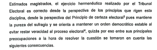 ¨No es cierto que exista infracción del mandato constitucional, el Tribunal Electoral ejecutó su facultad interpretativa a nivel legal como la Carta Magna le faculta y ofreció la mejor solución a su alcance dentro de la normatividad electoral disponible¨.