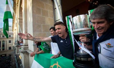 Miles de aficionados acompañaron a los jugadores del Real Betis en el celebración del campeonato de la Copa del Rey. El técnico del Real Betis, el...