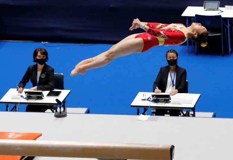 Gimnastas de cuatro naciones corrieron y saltaron en una competición amistosa en Tokio el domingo, que tuvo como objetivo mostrar al mundo que Japón puede llevar a cabo con seguridad las aplazadas Olimpiadas del 2020 en la era del coronavirus.